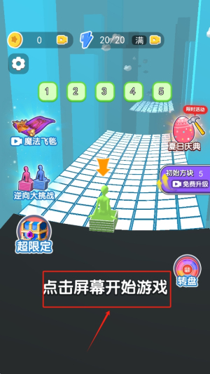 1、开始游戏:在游戏主界面,点击“点击屏幕开始游戏”按钮来启动游戏。