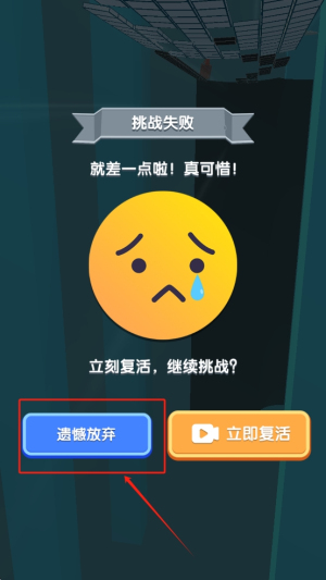 3、应对失败:如果挑战失败,你可以选择“遗憾放弃”或“立即复活”继续挑战。