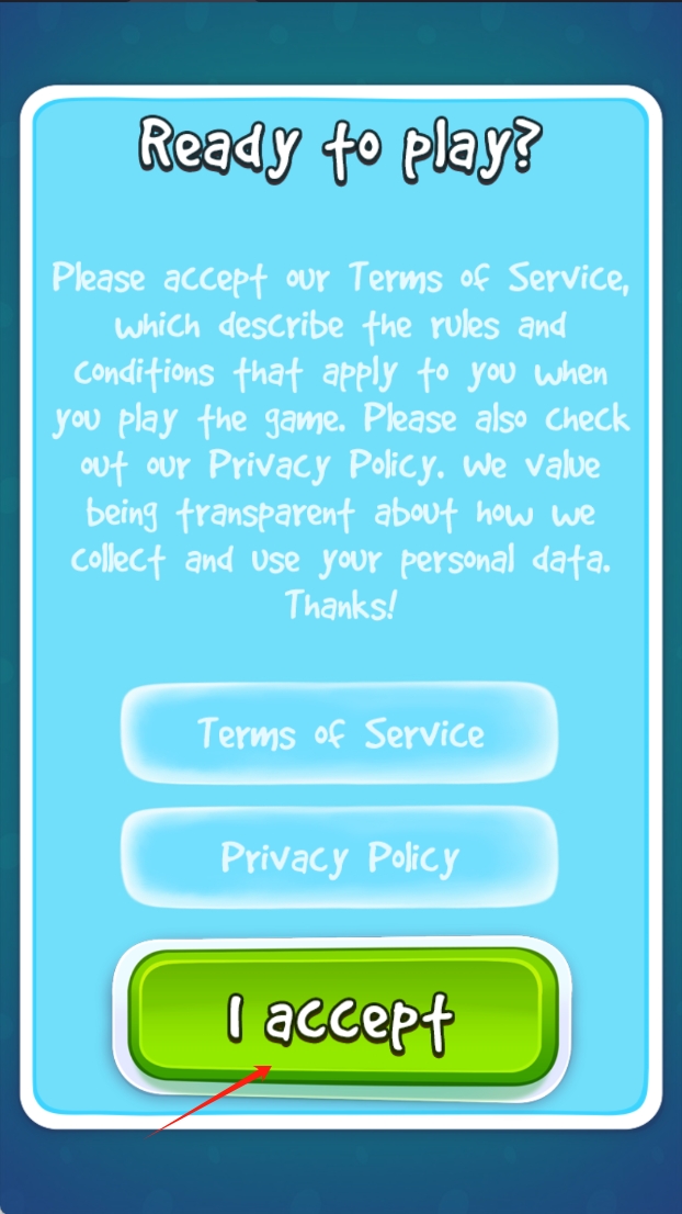 1、点击“我接受”按钮,表示同意游戏规则和隐私政策条款,确保游戏顺利进行。
