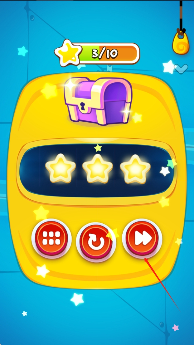 3、查看获得的星星数量和宝箱奖励,点击重置按钮重新开始关卡,点击暂停按钮暂停游戏。