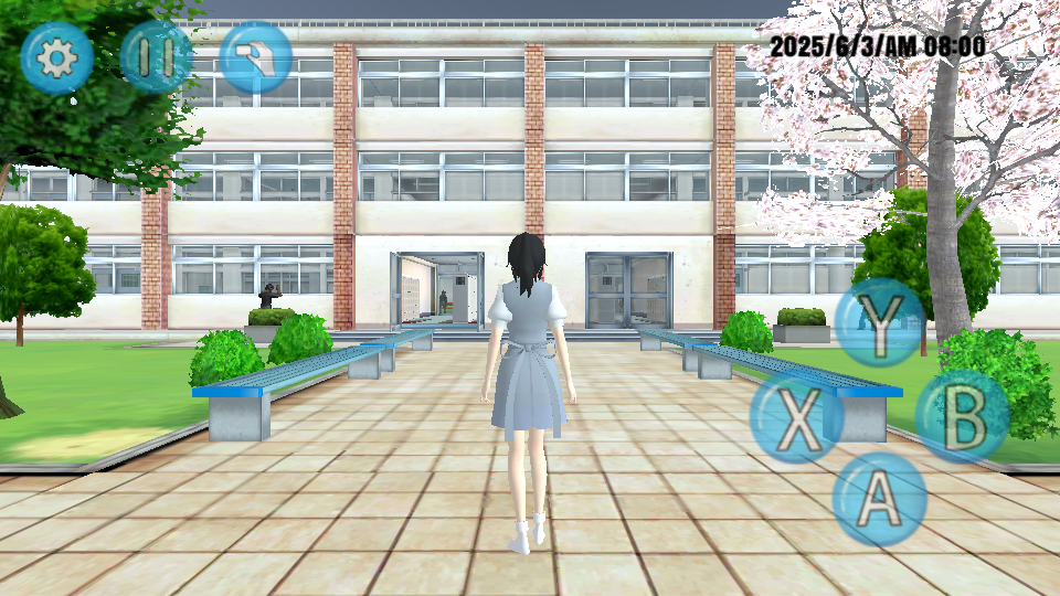 3、第三张图中,使用右侧【Y-X-B-A】按钮控制角色,在校园场景中探索,体验游戏玩法。