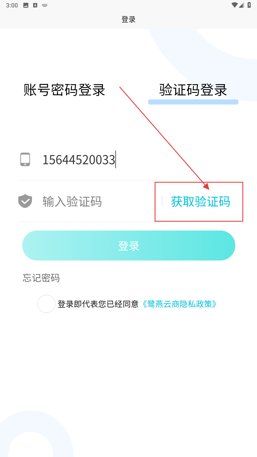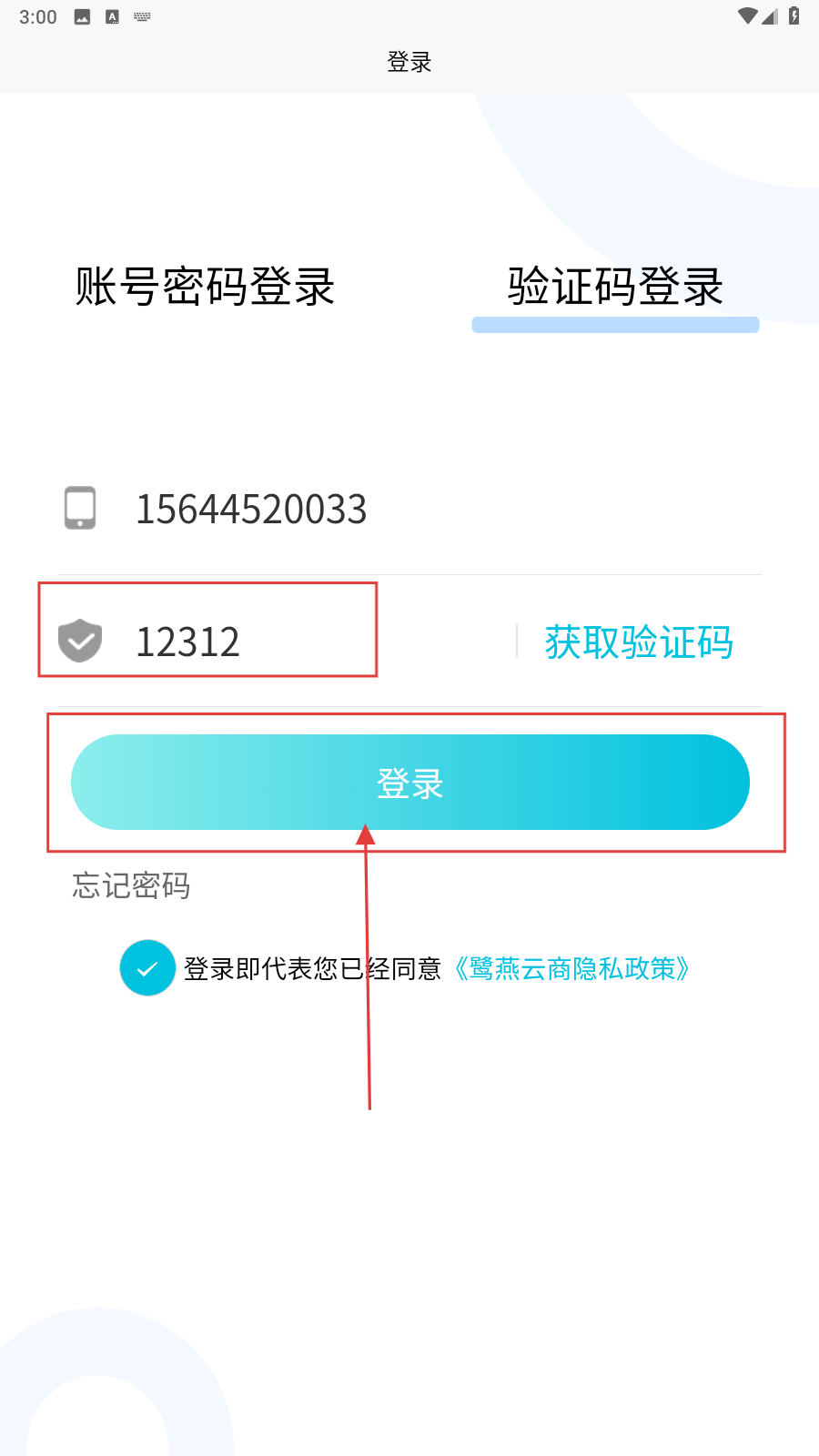 1、打开应用,填写手机号。