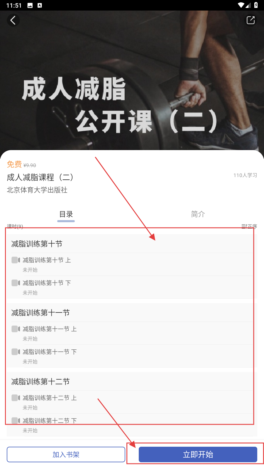 2、点击课程进入详情页,确认课程目录,点击【立即开始】,开启课程学习流程。