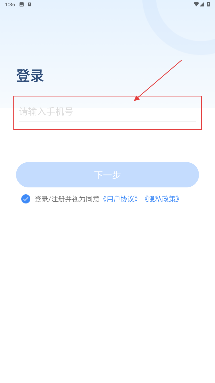 1、开启应用,于登录页面找到【请输入手机号】输入框并点击,开启账号录入操作流程。