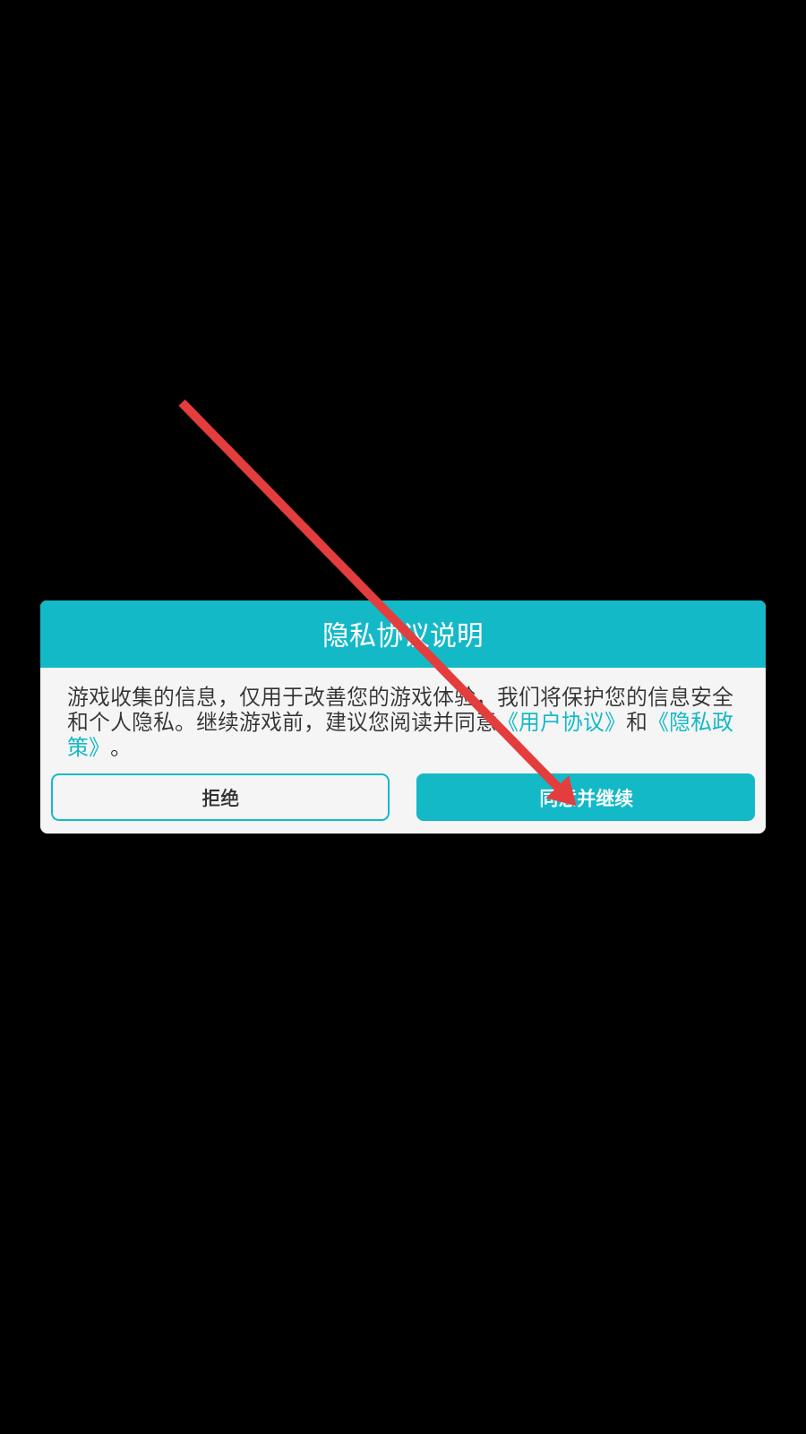 1、进入游戏,点击【同意并继续】。