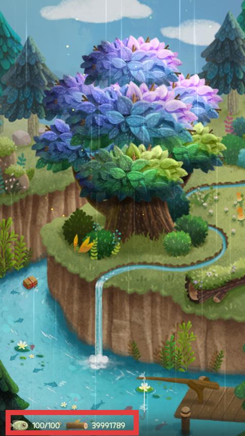 2、关注底部鱼(100/100)、木材(39991789)资源,探索场景收集补充。