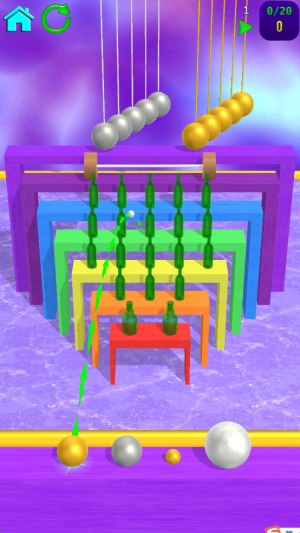 3、物理真实模拟:运用物理引擎,小球撞击角度、力度精准影响瓶子倾倒效果,增强游戏真实感。