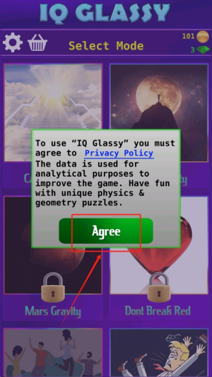 1、同意隐私政策:点击“Agree”按钮,同意隐私政策并开始游戏。