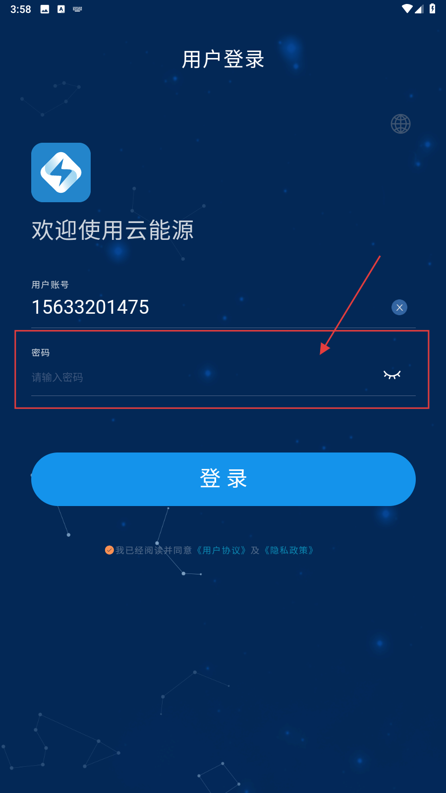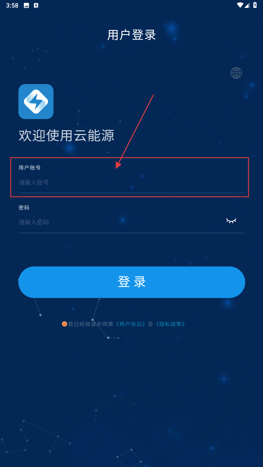 1、打开应用,在【用户登录】页点击【用户账号】框,录入账号。