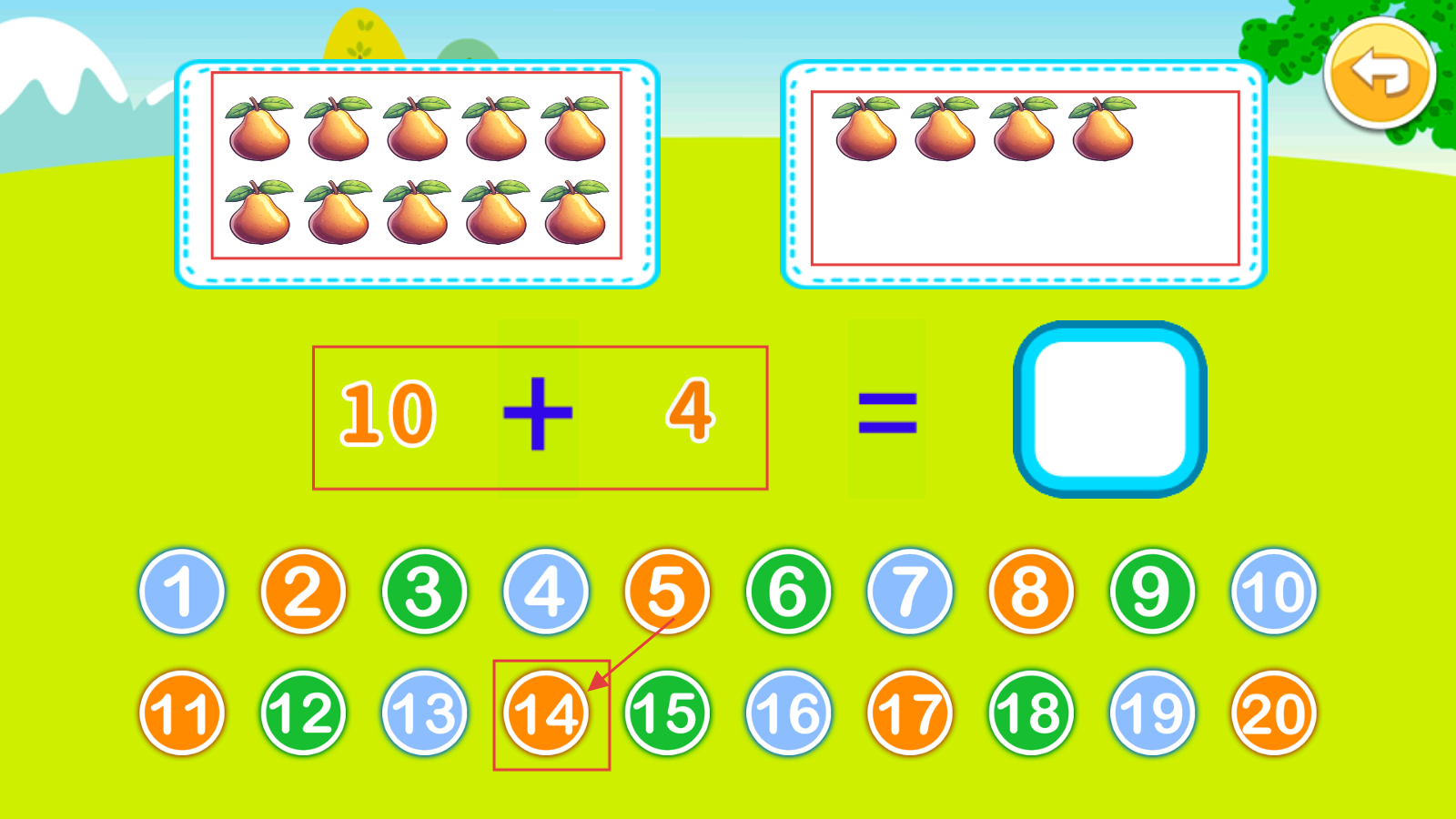 2、在练习页,计算题目(如10+4=14),选对应数字(14)。