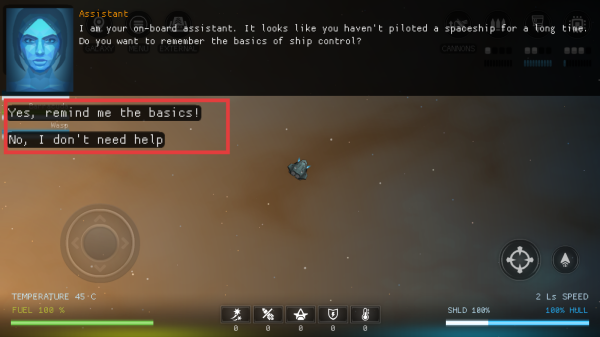 1、开始游戏时,根据自身需求,选择【Yes,remindmethebasics!】获取操控基础提醒,或选【No,Idon'tneedhelp】跳过。