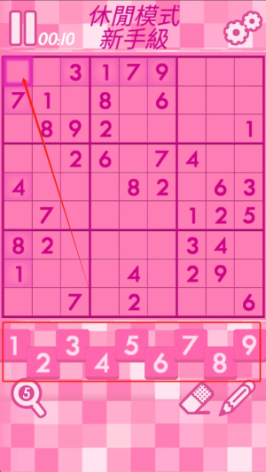 3、进行游戏:在数独游戏界面,通过点击数字并将其拖动到正确的空格中来填充数独棋盘,完成游戏。