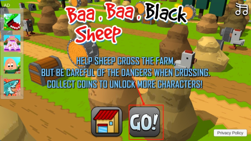 1、开始游戏:点击“GO!”按钮进入游戏,准备帮助绵羊穿越农场。