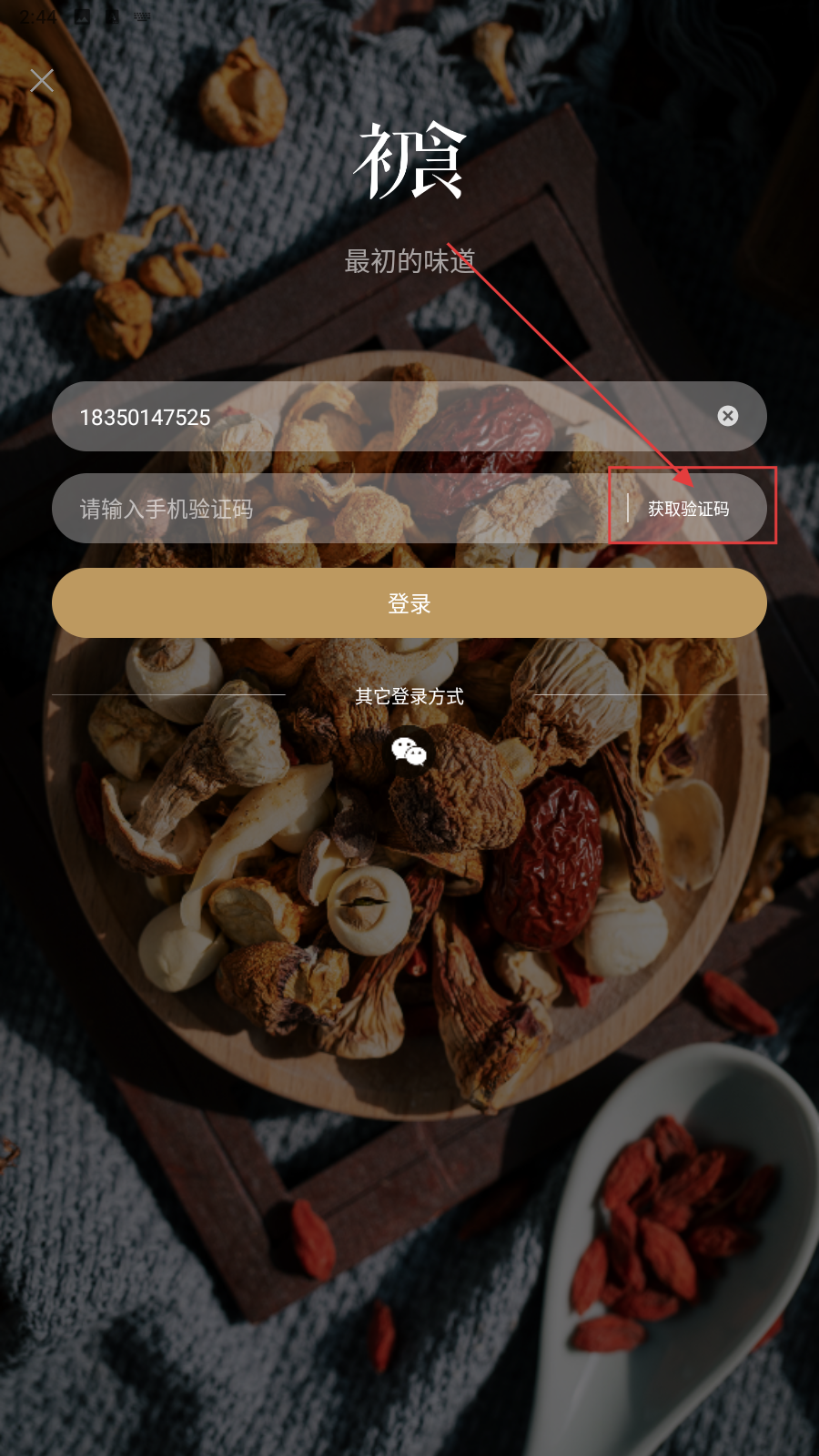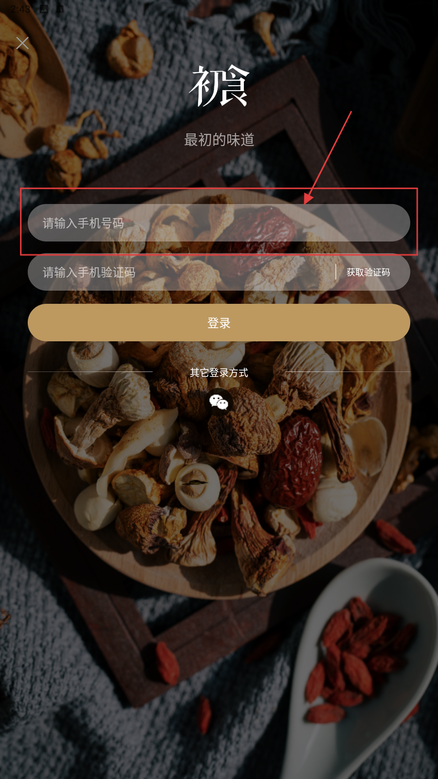 1、打开应用,填写手机号。
