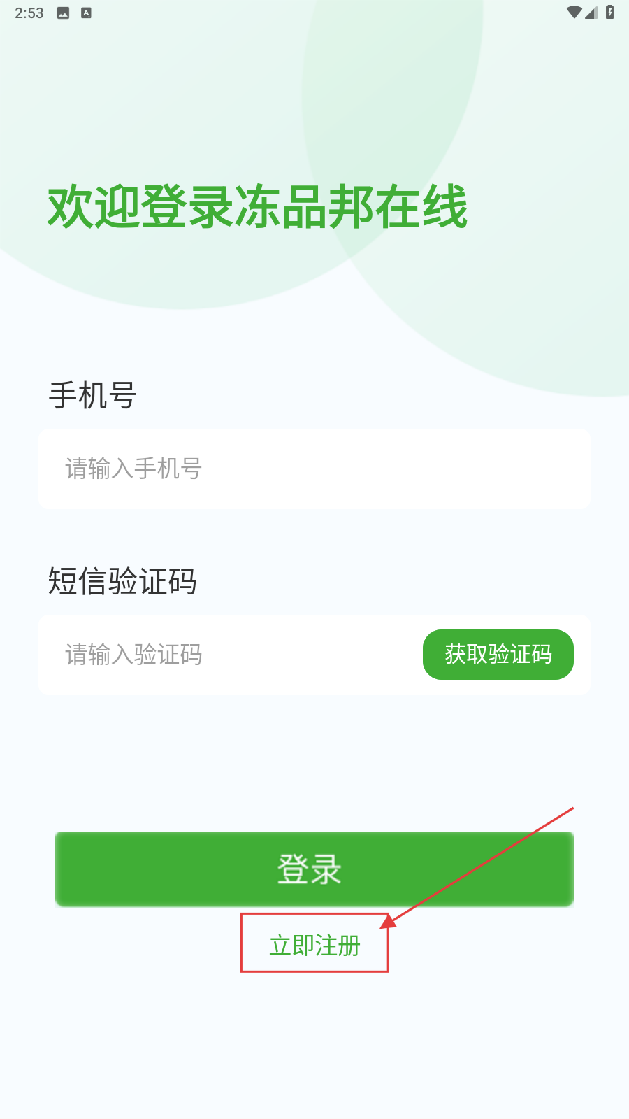 1、在登录页点【立即注册】。