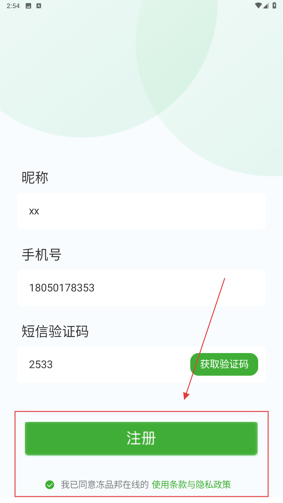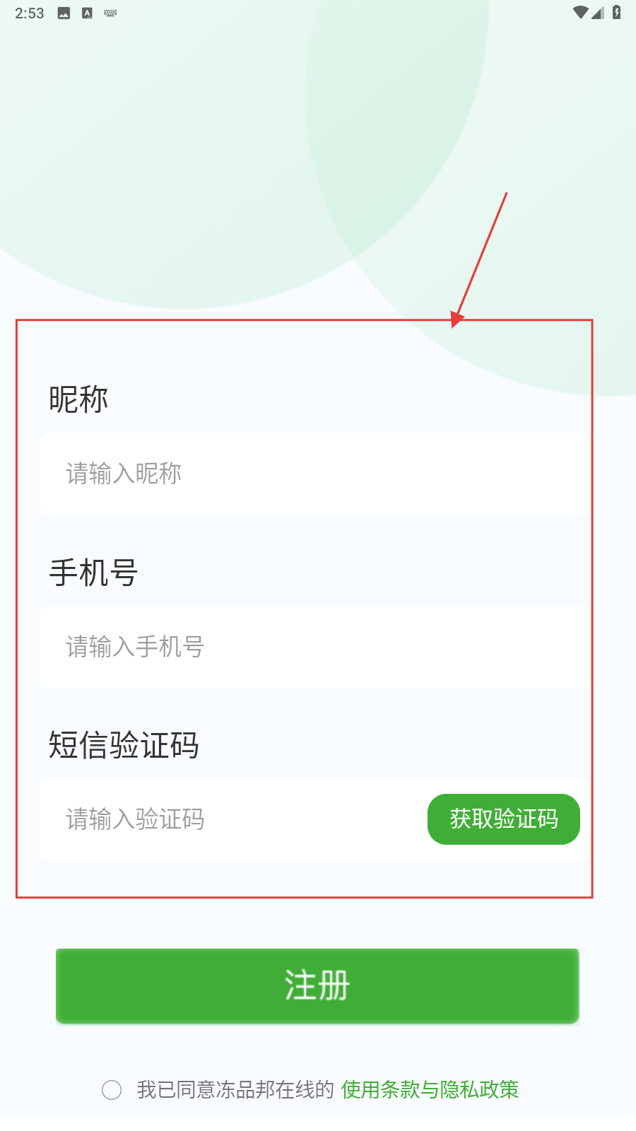 2、填昵称、手机号,点击【获取验证码】,填写获取的验证码。