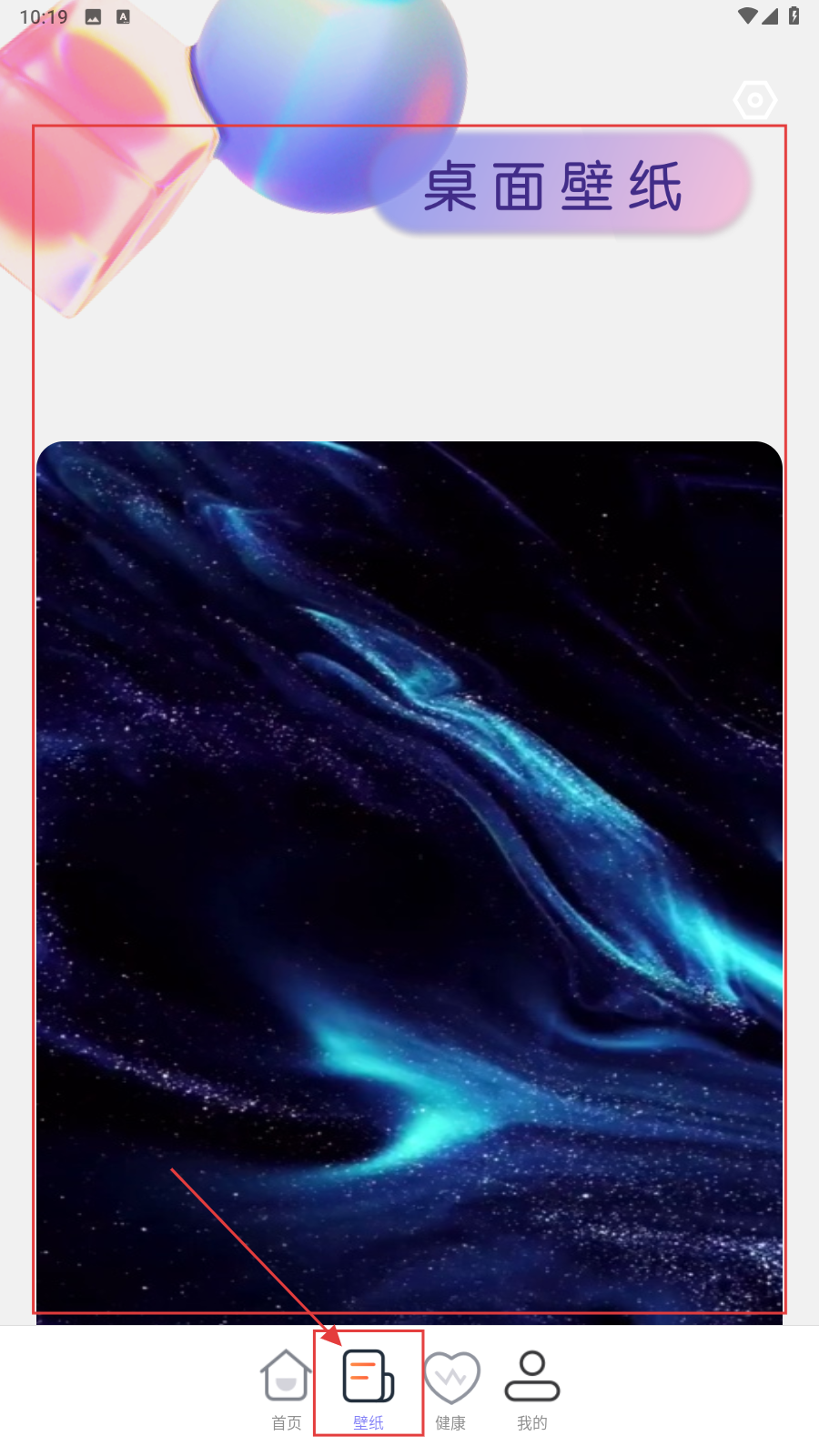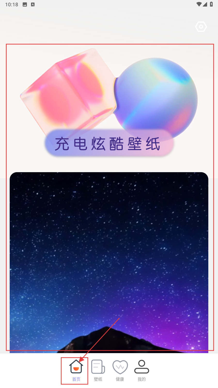 1、在【首页】浏览“充电炫酷壁纸”等内容。