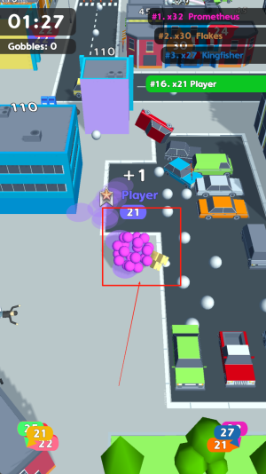 2、寻找吞噬目标:在地图中移动小球,优先吞噬比自身小的物体或其他玩家小球,积累成长资源。
