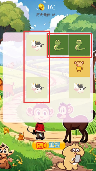 2、仔细观察图案分布,优先消除数量较多且容易点击到的相同动物图案,每次成功消除可获得金币。