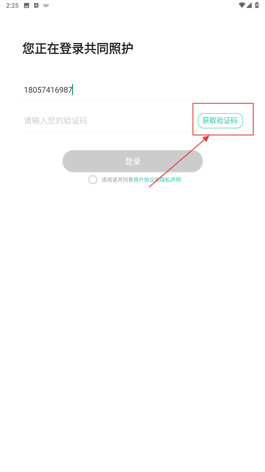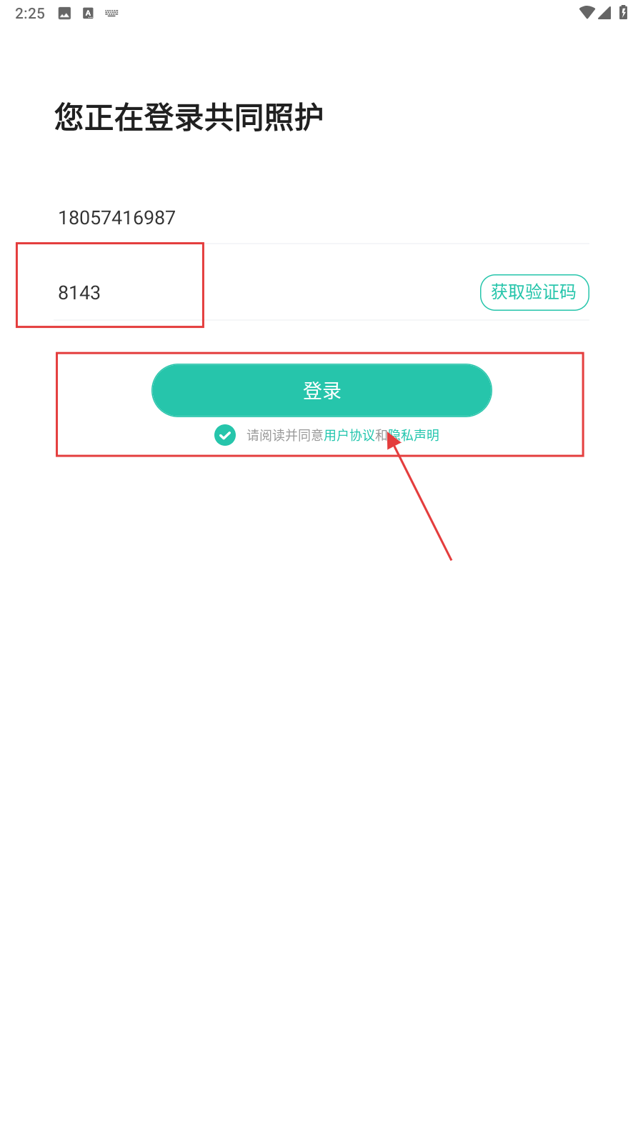 3、将获取的验证码输入并点击【登录】即可完成注册。