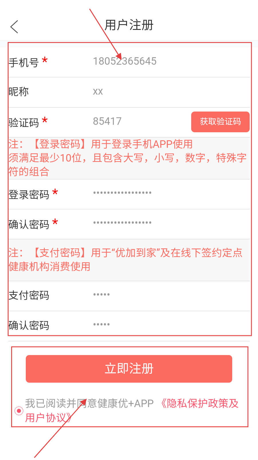 3、填手机号、昵称、验证码等,填写好后,点击【立即注册】即可。