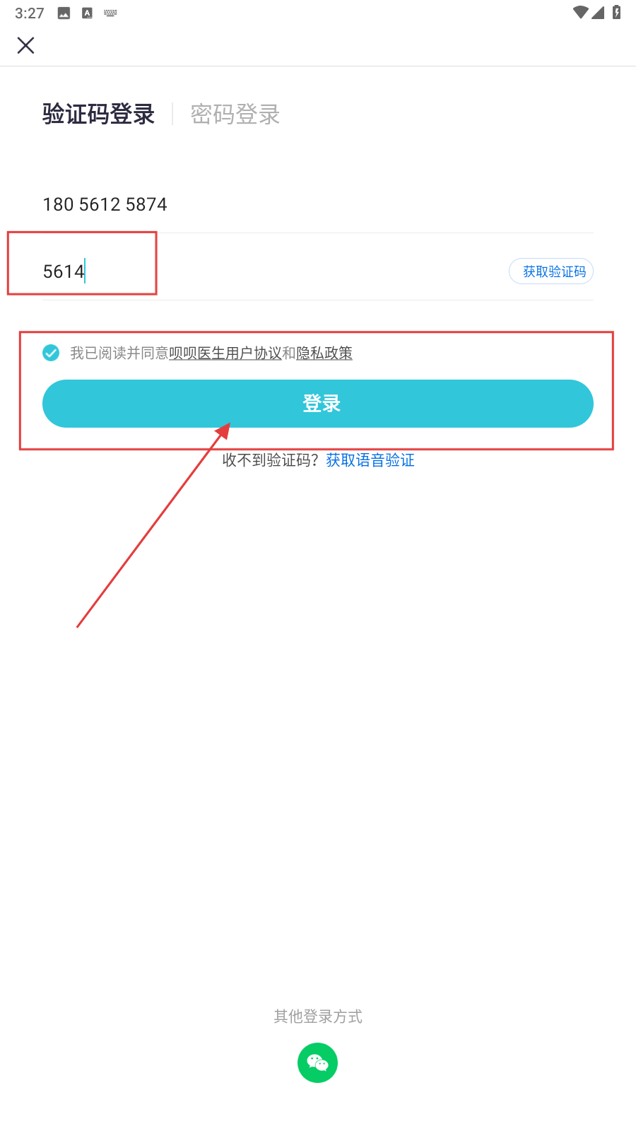 3、将获取的验证码输入,勾选协议,点击【登录】即可。
