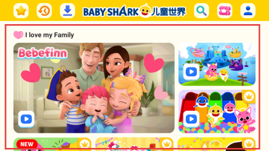 1、首页有“Let'splaywithBebefinn”主题内容,呈现相关动画视频。