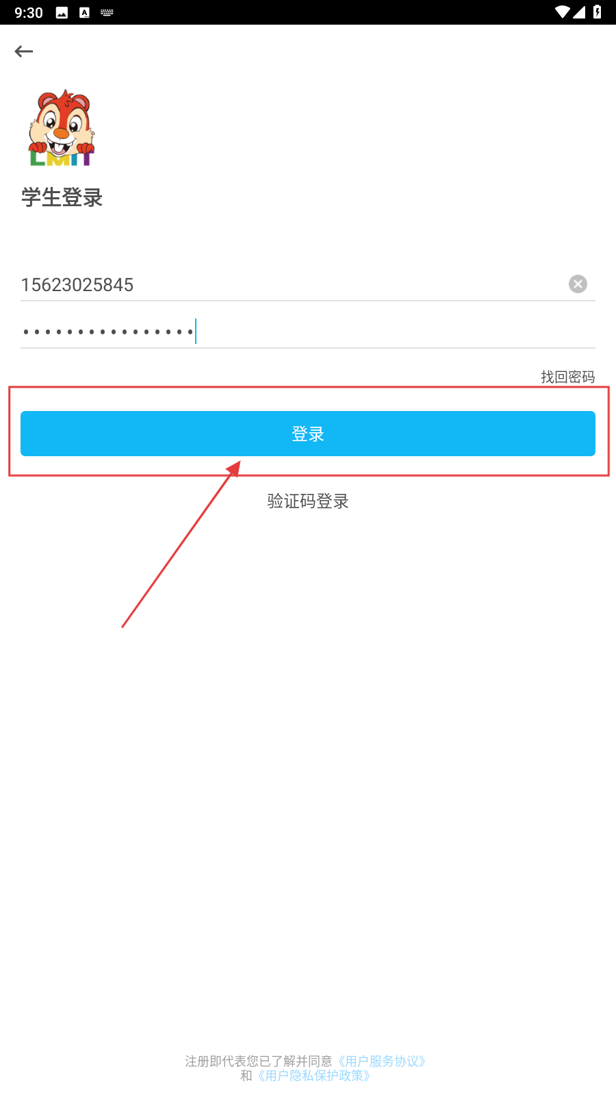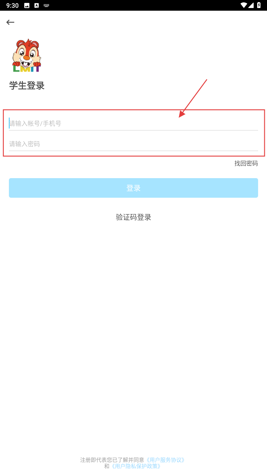 2、进入登录页,填帐号/手机号、密码。