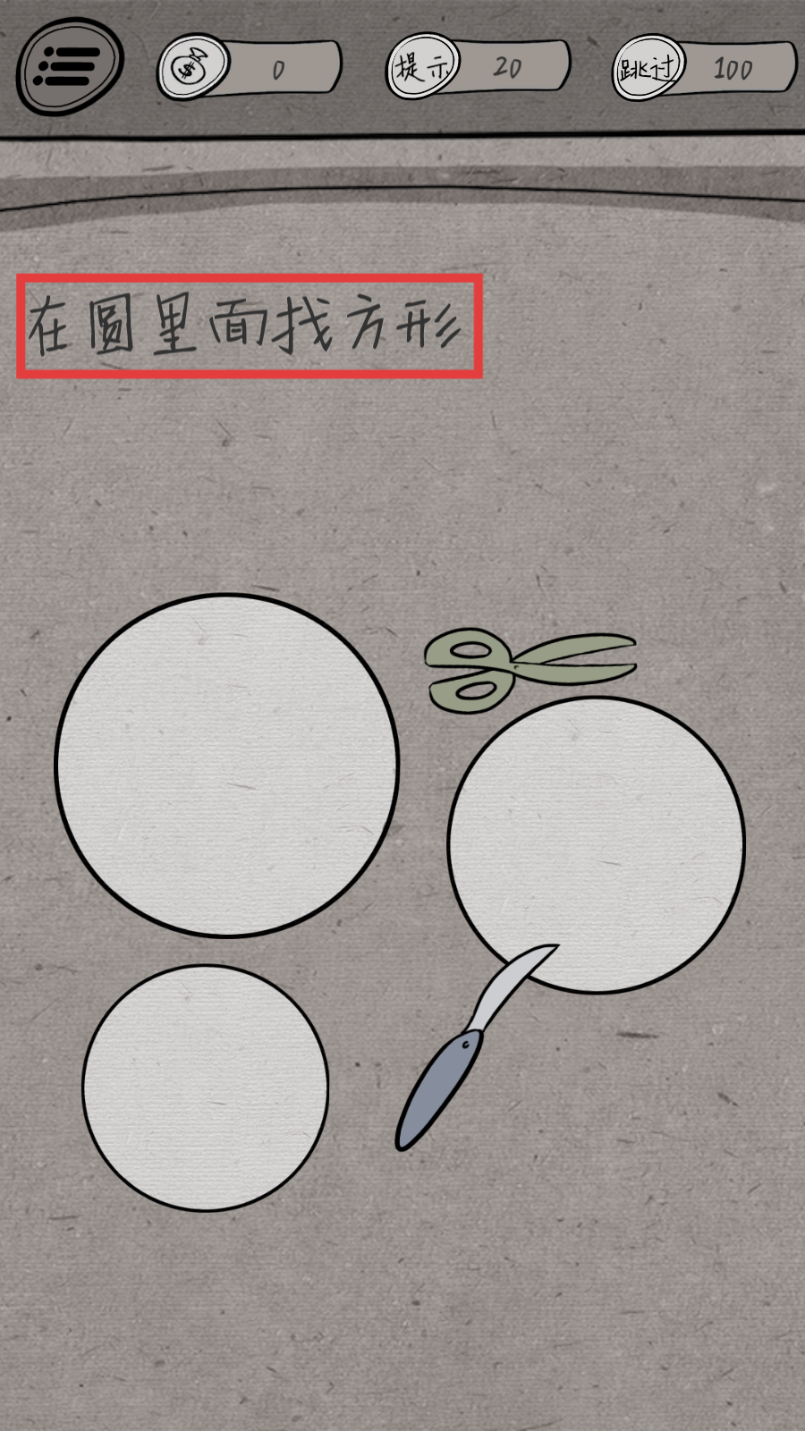 1、进入游戏,根据游戏提示,在圆里面找方形。