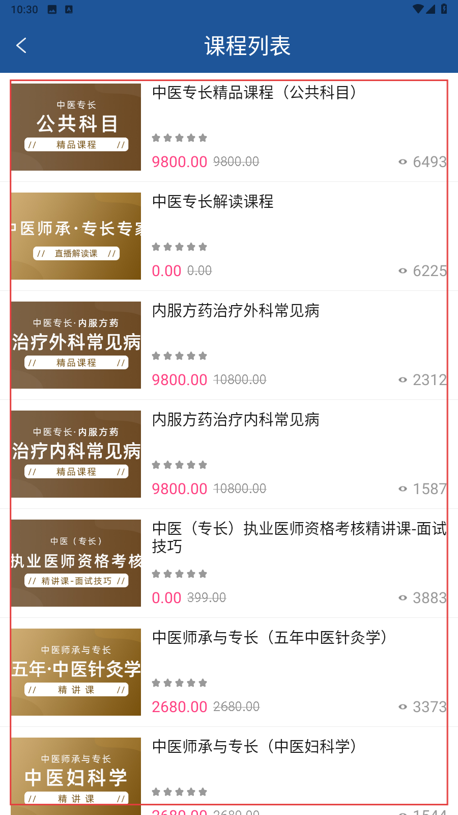 3、查看“课程列表”,选课程(如中医专长精品课),可了解价格、简介,进行购买/学习。