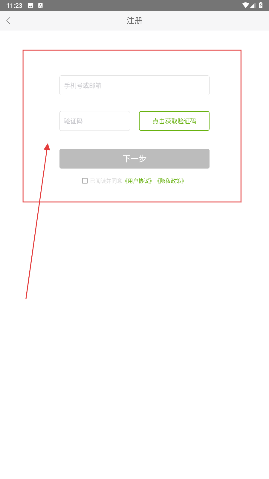2、填手机号/邮箱,点【点击获取验证码】,填验证码。