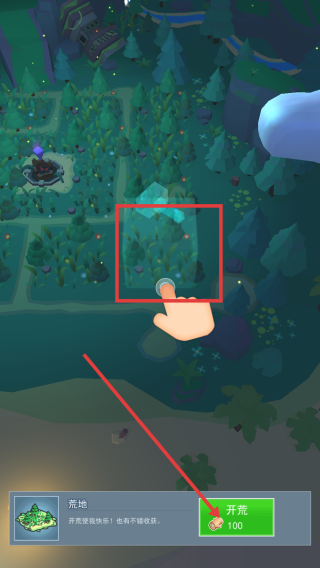 1、当看到游戏中显示【荒地】时,若资源足够,及时点击【开荒】按钮消耗100资源开垦荒地,获取发展空间。