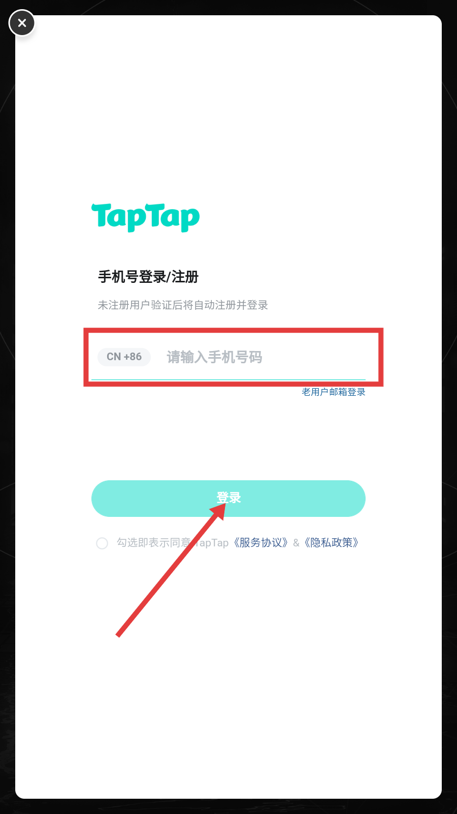1、进入游戏,点击屏幕中间【Tap】登录图标。