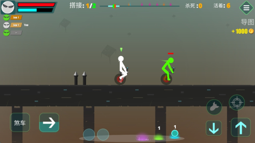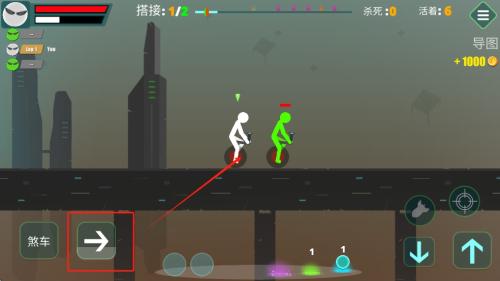 1、点击左侧带有箭头的 “煞车” 旁按钮,控制火柴人角色移动方向,准备应对前方路况 。