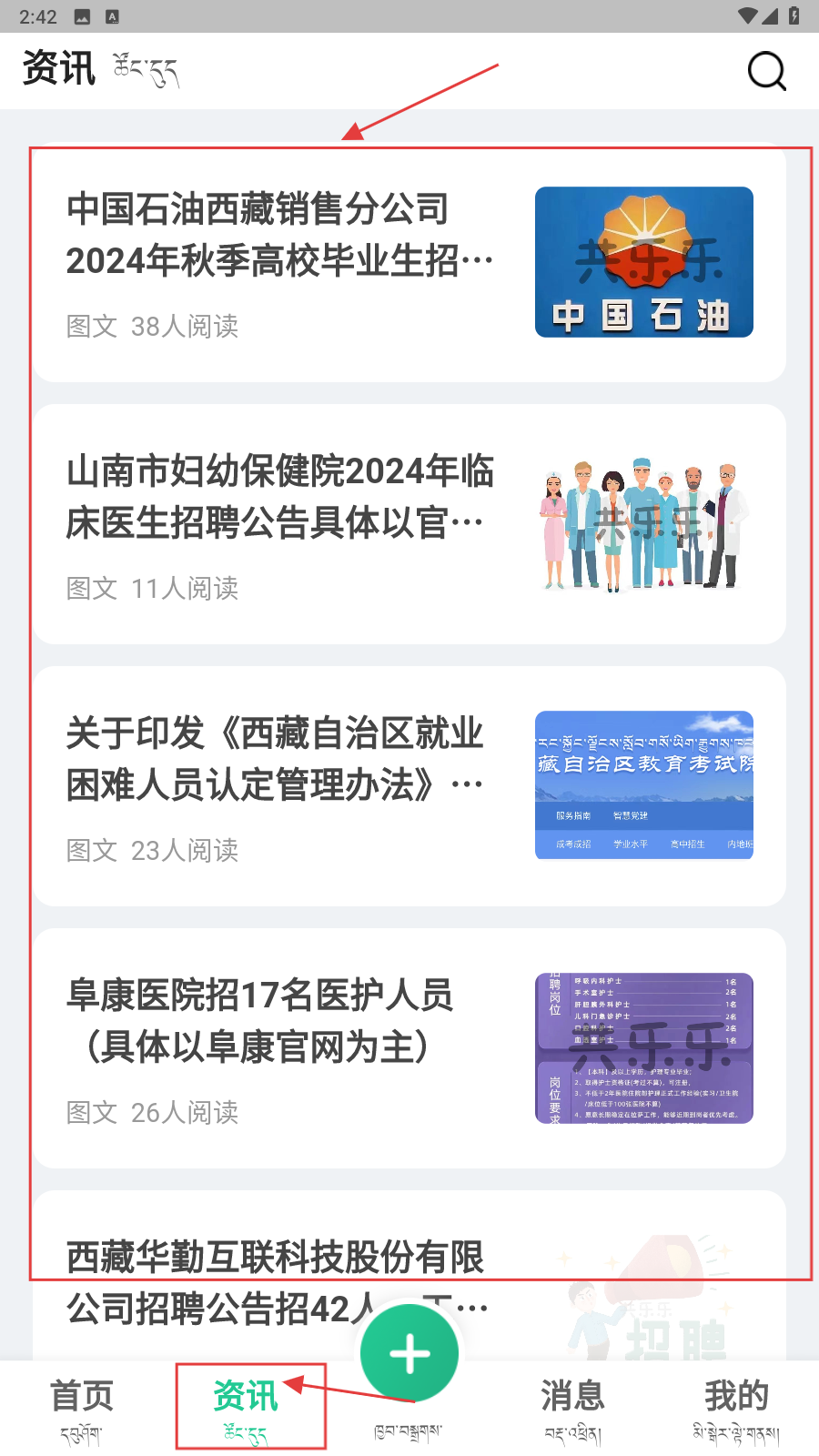 2、在【资讯】,点招聘资讯条目,进详情看内容。