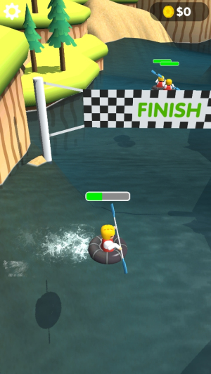 2、在比赛过程中,长按画面中皮划艇对应的白色圆形区域,控制皮划艇加速前进,注意躲避障碍、超越对手 。