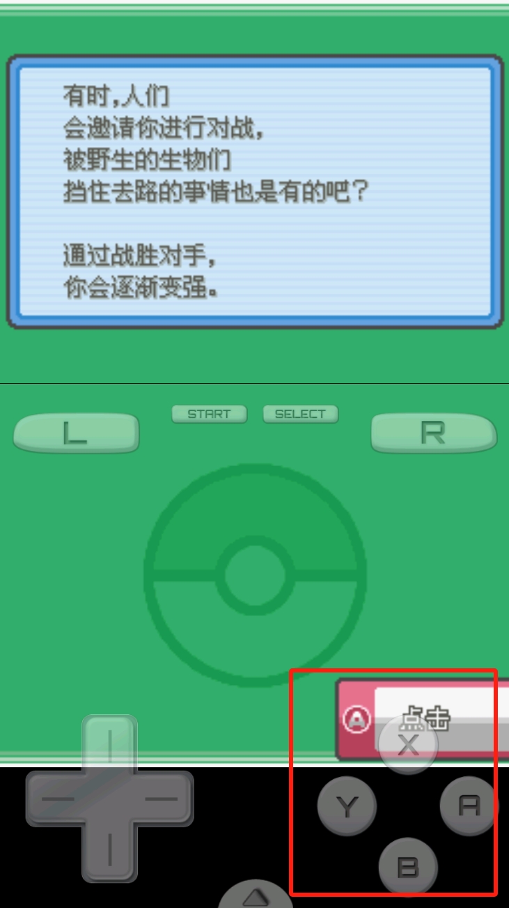 3、最后,开始你的冒险。在对话界面,点击“A”键继续对话,跟随剧情,开始你的口袋妖怪之旅。