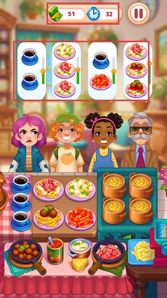 1、创意烹饪体验:自由搭配食材制作海量菜品(咖啡小吃到复杂晚餐),支持个性化调味与摆盘,满足玩家对美食创作的想象。