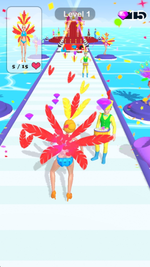 3、丰富服装收集:赛道中散落百余种桑巴服饰,从羽毛裙到亮片披肩,自由搭配个性造型。