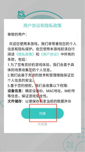 1、接受隐私条款:阅读并同意用户协议和隐私政策,点击“同意”按钮以继续。
