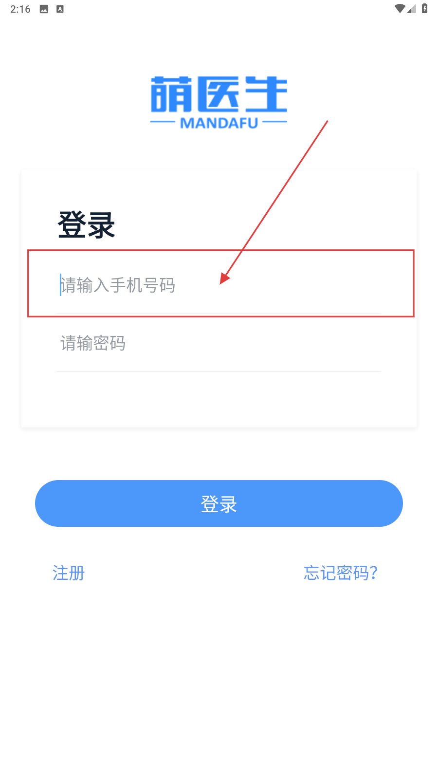 1、打开应用,填写手机号。