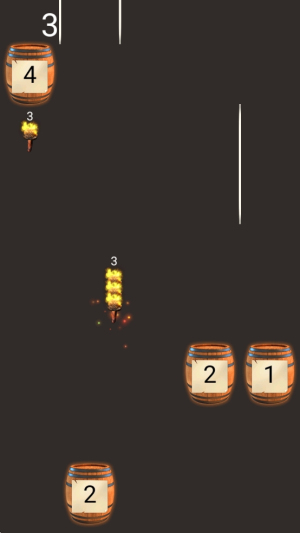 2、地形交互设计:木桶分布于斜坡、阶梯等多样地形,燃烧轨迹受物理规则影响,增加操作难度。