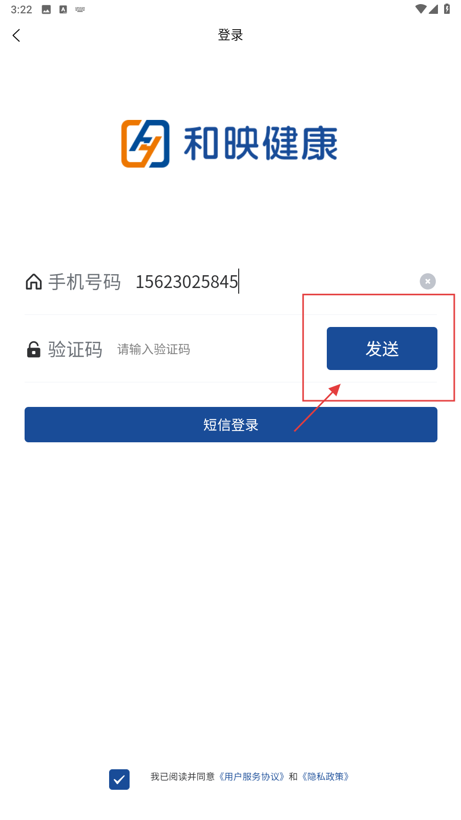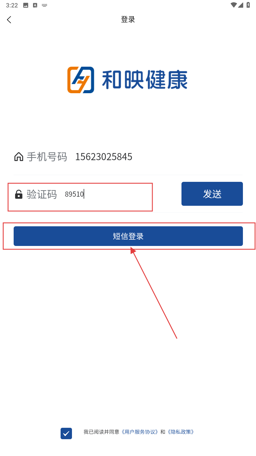 3、将获取的验证码输入,勾选协议,点击【短信登录】即可。