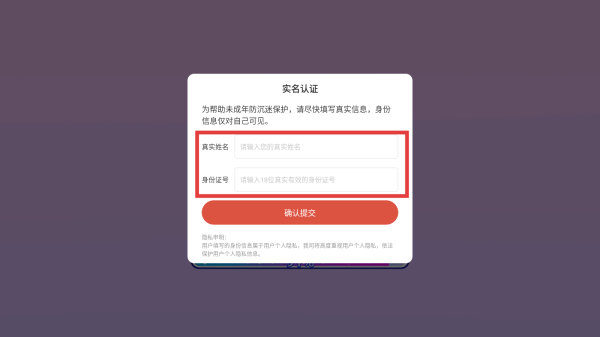 2、输入真实姓名和身份证号码。