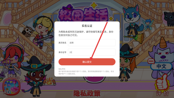 1、进入游戏,点击【实名认证】。