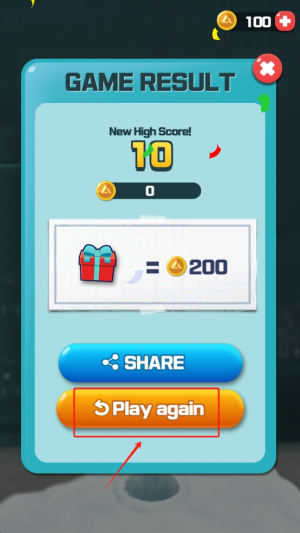 3、结束游戏:游戏结束后,点击“Play again”按钮重新开始游戏。