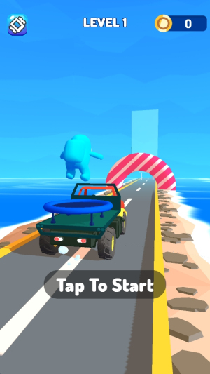 1、开启闯关挑战:进入游戏,选择主题关卡,操控角色站在行驶的车上,准备开启弹跳冒险。