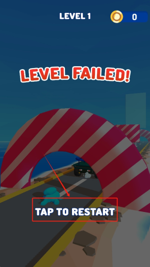 3、重新开始:如果失败,点击“Tap To Restart”按钮重新开始关卡。