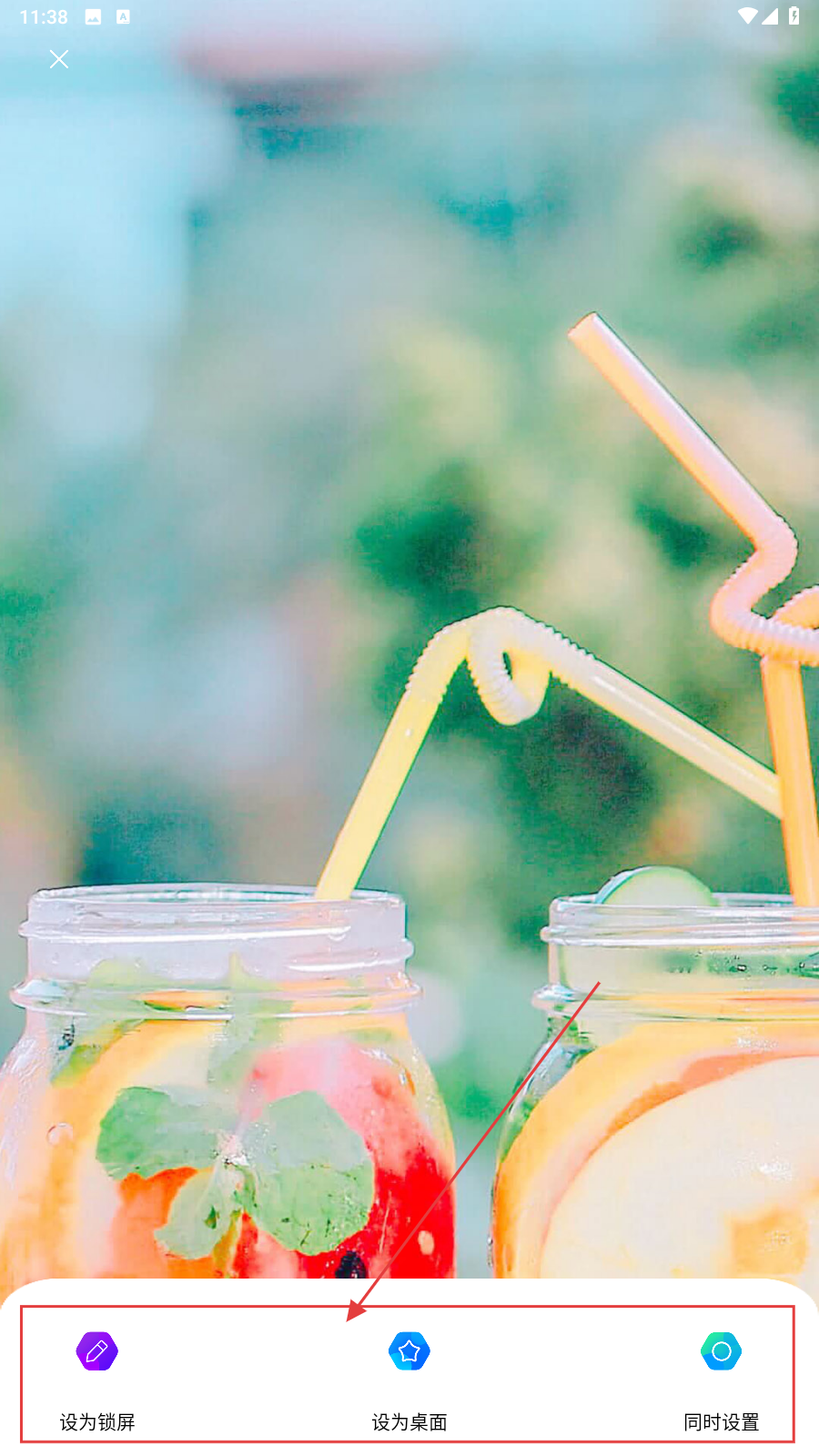 3、选设置方式(设为锁屏/桌面/同时设置),完成壁纸设置。