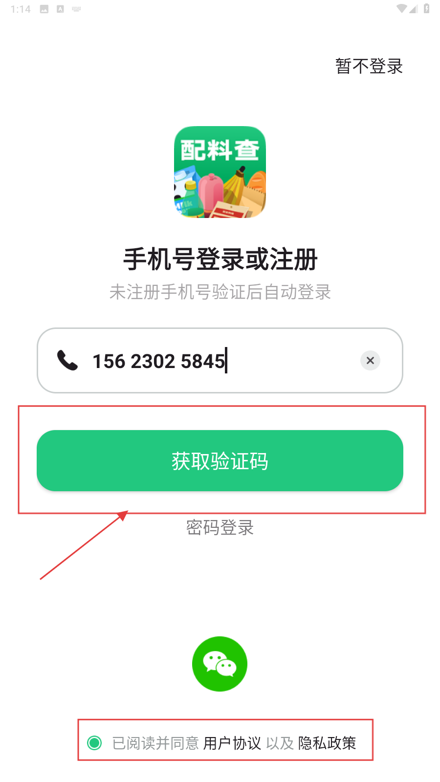 3、等待短信验证码,在6位验证码框填收到的码,完成登录流程。